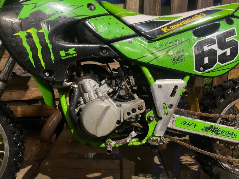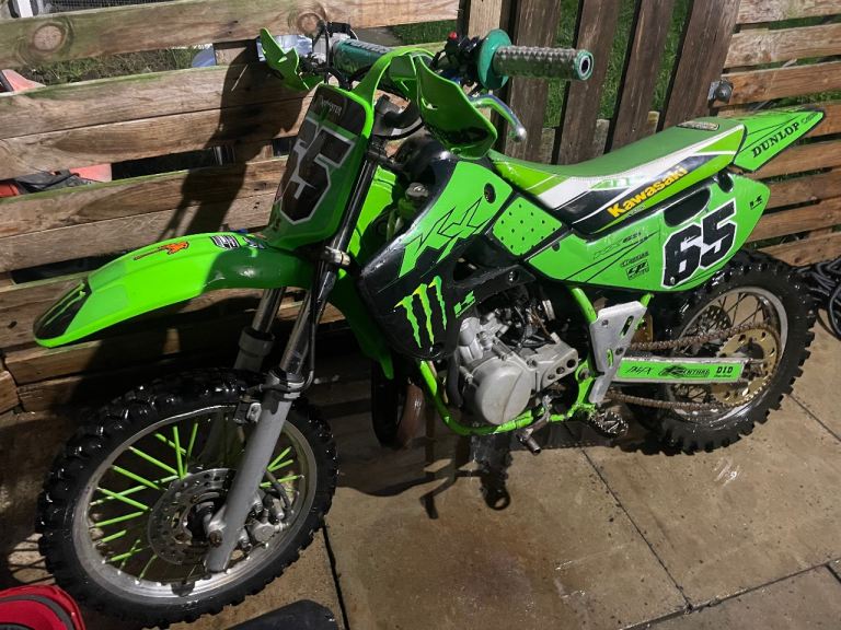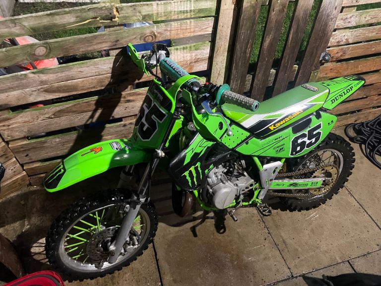 Kx65 runs and rides as it should starts first kick bike comes with spare air filter spark plugs and graphics kit looking to swap for 85-125cc any questions just ask