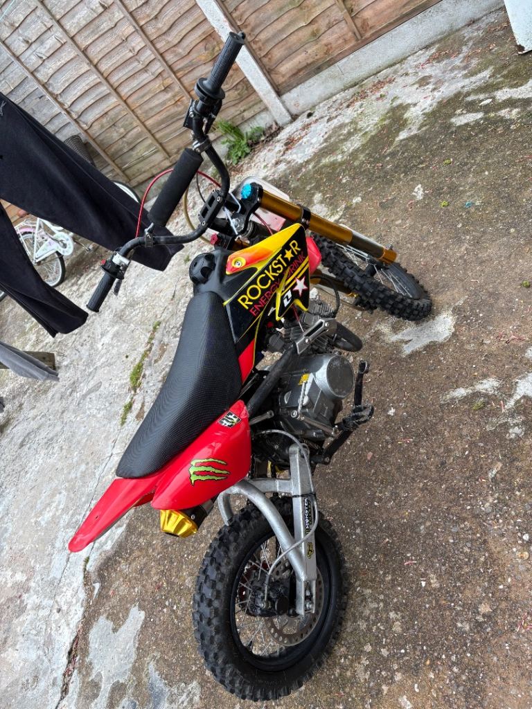 125cc pitbike runs and rides zero issues had new throttle on it and catches up or overtakes 140cc pitbikes starts 1st 2nd kick reason for selling dont ride anymore