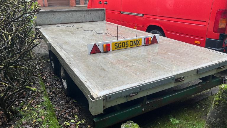 Strong trailer with leaf spirngs, full aluminium bed, tows well. No ramps or sides unfortunately.