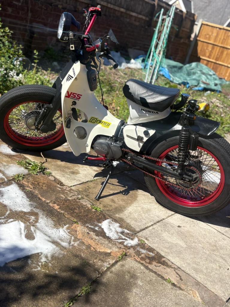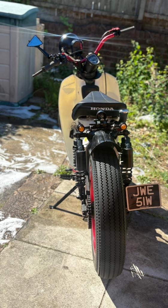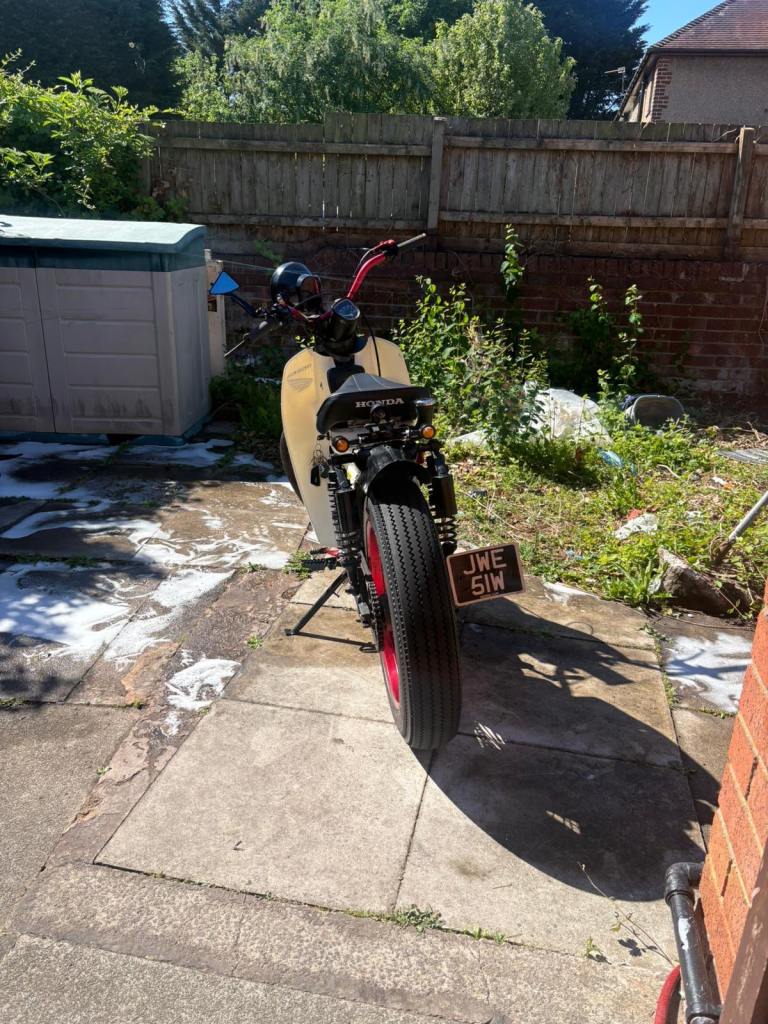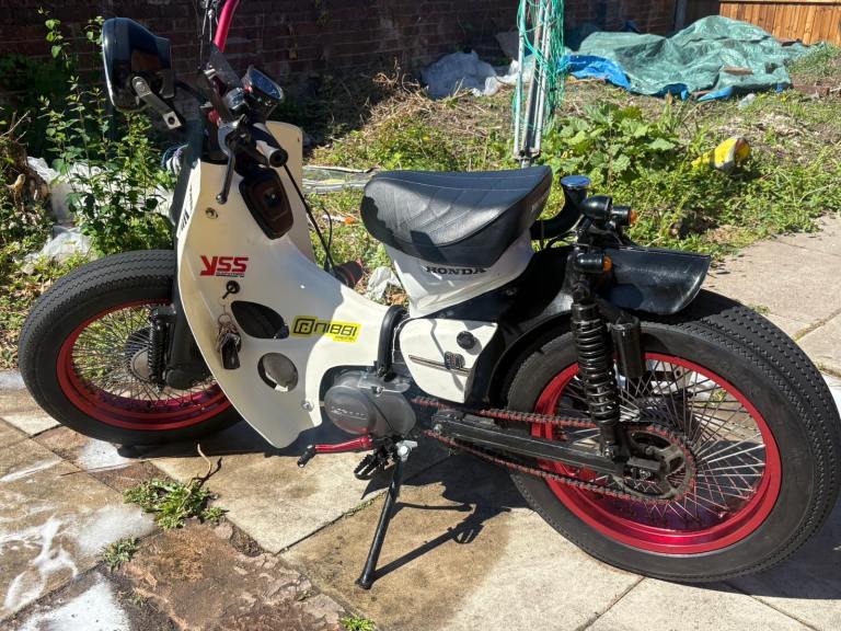 Custom Honda club 90 with a lifan 125cc manual engine kept speed slash cut side exhaust and kept speed extra wide wheels.I have rode it to wales and back and it was brilliant.Dont want to sell it but want a bigger bike and this bike is tax &mot exempt.Also I have only done nearly 600miles with this new engine.who ever comes to view will buy and definitely won’t be disappointed.Also open to offers was up for £2200. Any Offers!