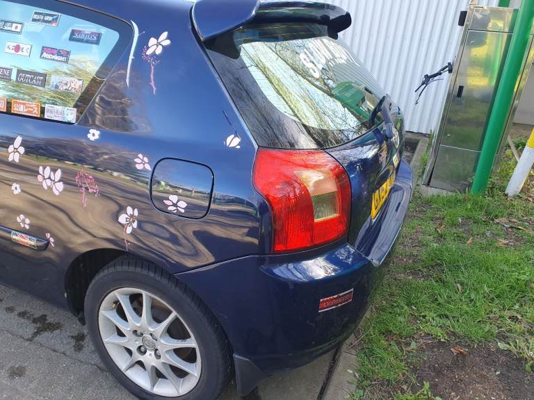 2002 Toyota Corolla T-Sport 1.8 VVTLI 191 BHP Cat-Back Exhaust by overkill performance, Ram Air cone air filter just had a new clutch, gearbox service, coolant flush, wheel alignment, front disks and pads (with proof ) hits lift very strongly quick little car Somewhat Becoming Rare Pre-Facelift 4 alloy wheels with a new full spare tyre with alloy in near mint condition Does have a large scratch on the passenger rear arch and a bigger scratch on the drivers door along with some bad paint pulled off on the drivers door done due to previous owners neighbours not liking the exhaust mot until January 2027