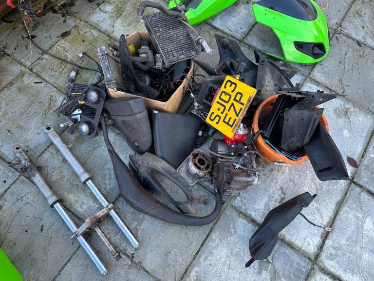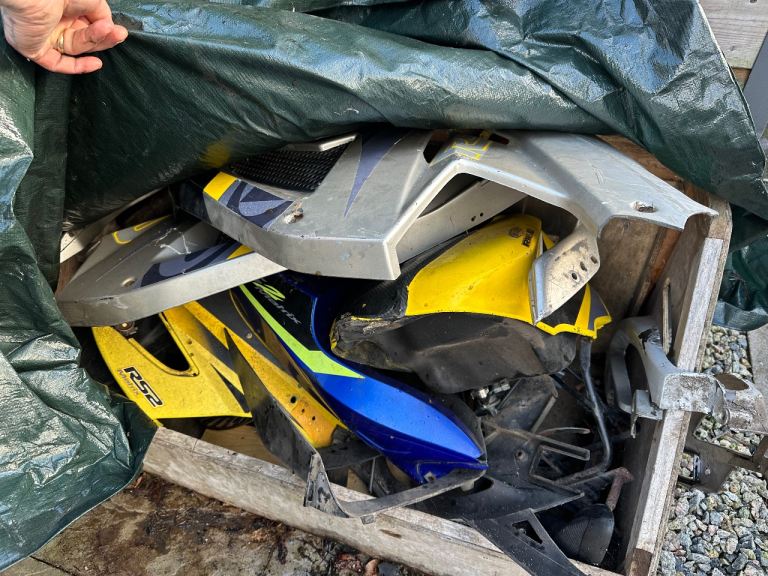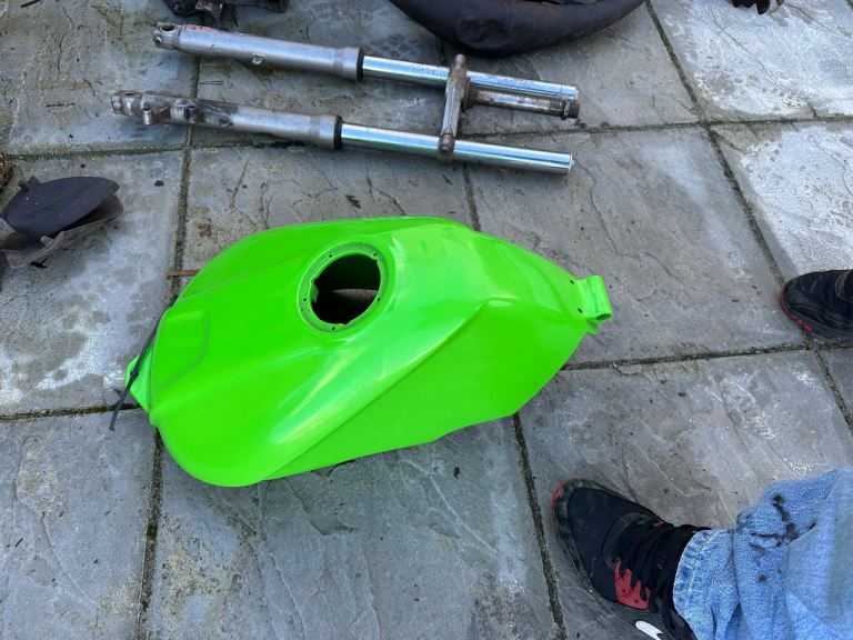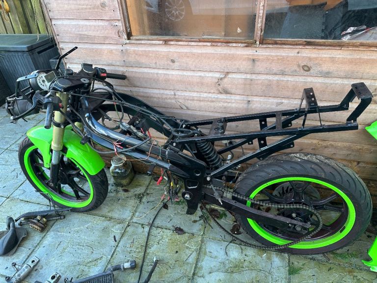 Unfinished project. Frame, wheels, plastics all painted, airsal 88.3cc top end, have all original plastics etc