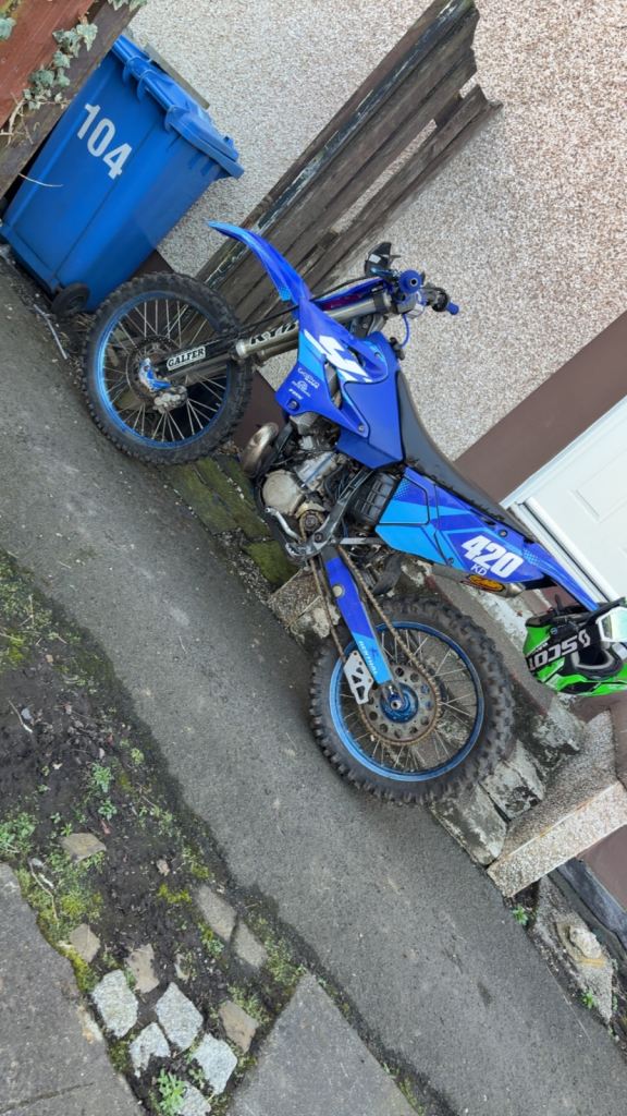 2007 yz250 2 stroke starts first kick hot or cold zero issues with bike has all power hits bands every gear lifts in all gears can’t fault bike in any way apart from needing wheel bearings replaced bike has roughly 20 hours or less can see all fresh gaskets boy before me broke his leg so bike sat in a container for 18 months could do with fresh seat cover if fussy but doesn’t bother me upgraded blue wheels as wheel both tyres like new both brakes work perfect just done new exhaust seals and springs I not long bought it but I’m no a fan of 2 stroke prefer 450s so would swap for a nice clean newer 450 or cash sale best year of yz250 to get do your research on these models no time wasters