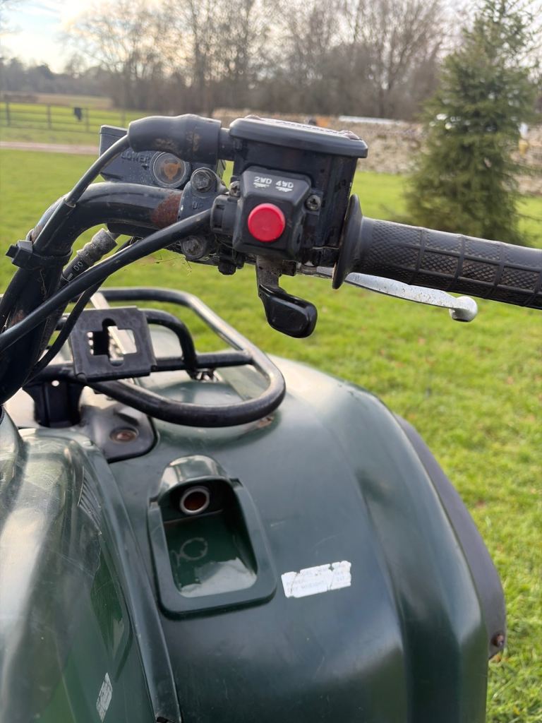 (Yamaha kodiak 400cc green 4x4 )( 2wd 4wd ) Drives excellent pull start & electric start . (No key but still starts ) lights work and the only thing that doesn’t work is the horn but an easy fix . No time wasters Comes with dog rack for the back. Great price !!