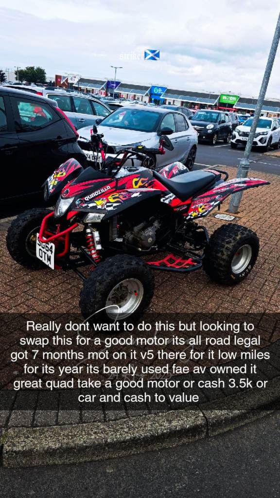 Looking to swap this road legal quadzilla xlc 500 for a good car or car and cash or just cash sale