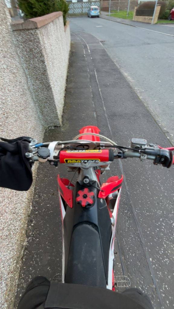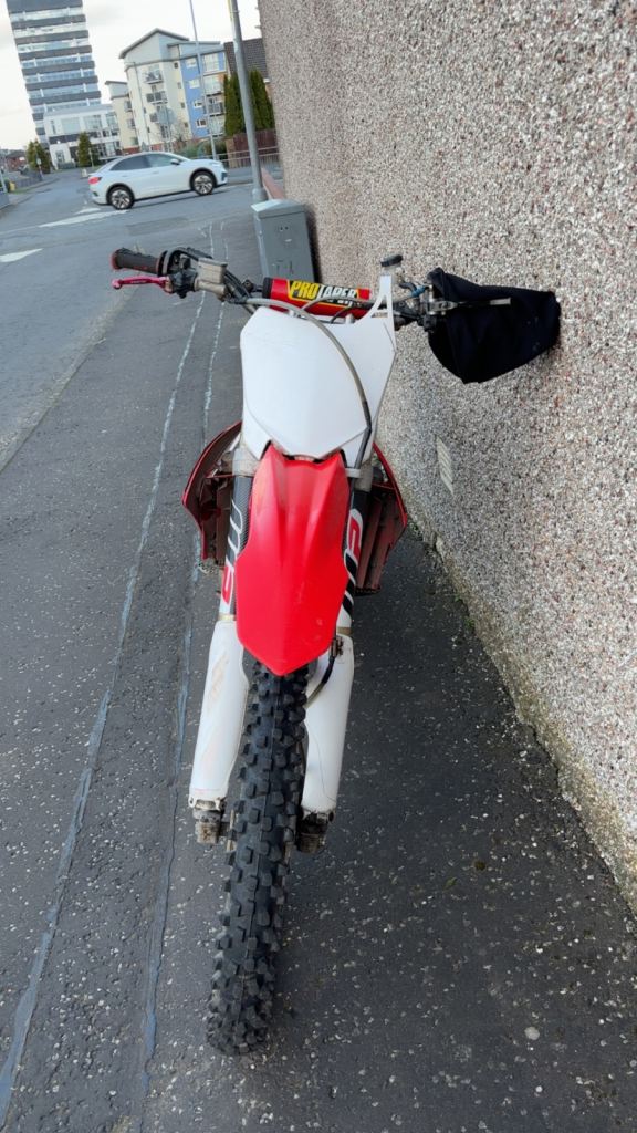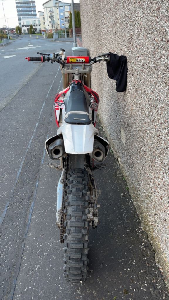 The bike has been well maintained with regular oil changes, air filter cleanings, and overall care. It starts easily, runs great, and has no mechanical issues. Plastics are in good shape for its age, and it’s been kept clean after rides. Bikes a monster, responsive throttle, amazing suspension good for track and trails extremely reliable I've had no issues with this bike since ownership. Big bike.