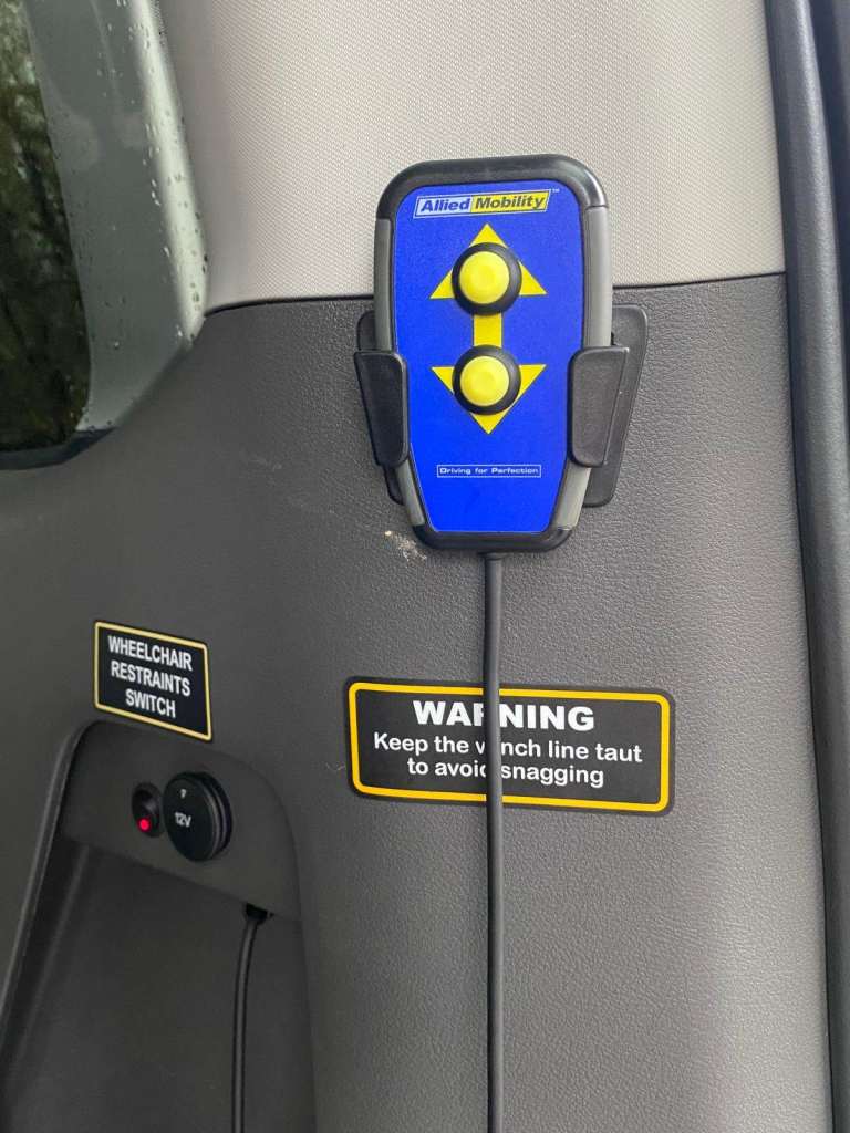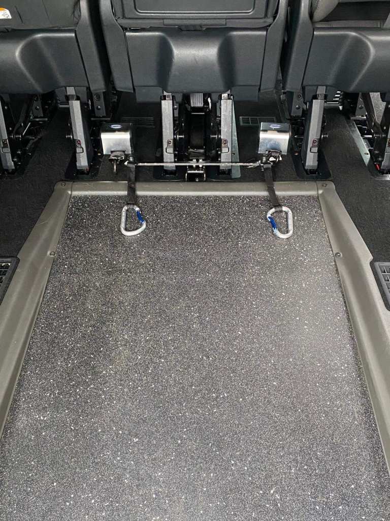 In addition to the wheelchair clamps, it is fitted with an electric winch to make it easier for manual wheelchairs. Lowered floor with EasyFold/ Bi-fold Ramp. QSTRAINT 4-point wheelchair restraints and secure 3-point diagonal seatbelt.