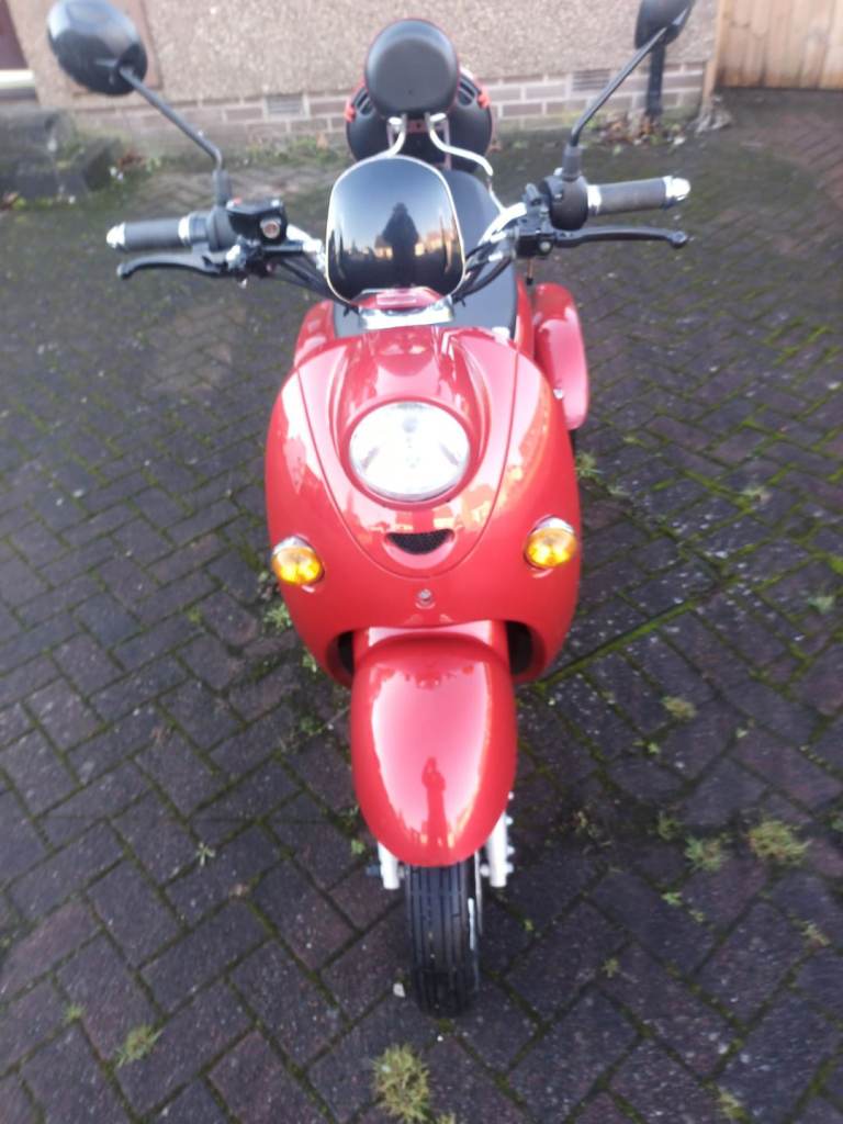 Awesome mobility scooter can fit 2 people long life battery tires that don't deflate has 3 speeds reverse with beeping has storage under seat only year half I'm a heavy guy it can take my weight goes up hills great excellent condition small scuff on side can't really notice it