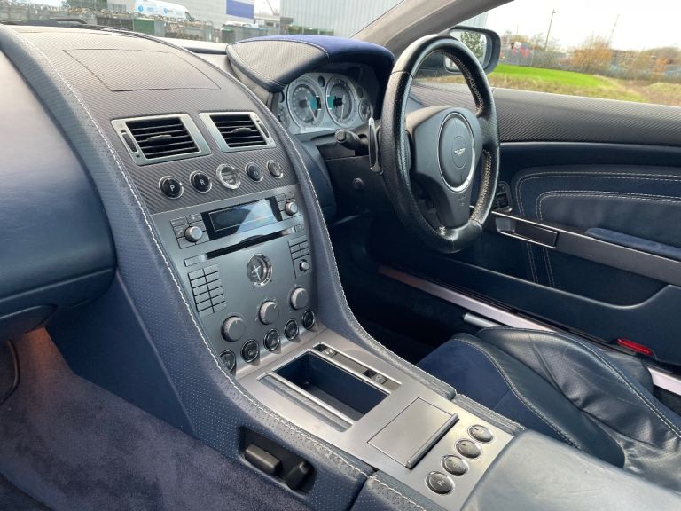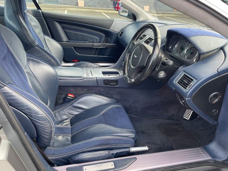Kahn conversion, Stunning silver bodywork, Awesome sounding V12 Engine, Kahn Front & rear bumpers, Side skirts, Rear spoiler, Clear taillights, Kahn Dark blue leather & alcantara heated electric seats, Satin black Aston Martin alloys with decent tyres all round, Sports mode, HID lights, Carbon dash panel & door caps, Twin chrome exhaust pipes, Electric fold mirrors, 2 Remote central locking keys, Electric windows & mirrors, Parrot hands free system, Sat nav, Aston Martin CD Music system, Fully loaded!