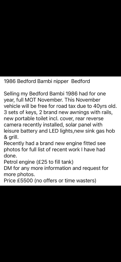 Posting for under a monthBedford, Bambi nipper 1986, 970 (cc)