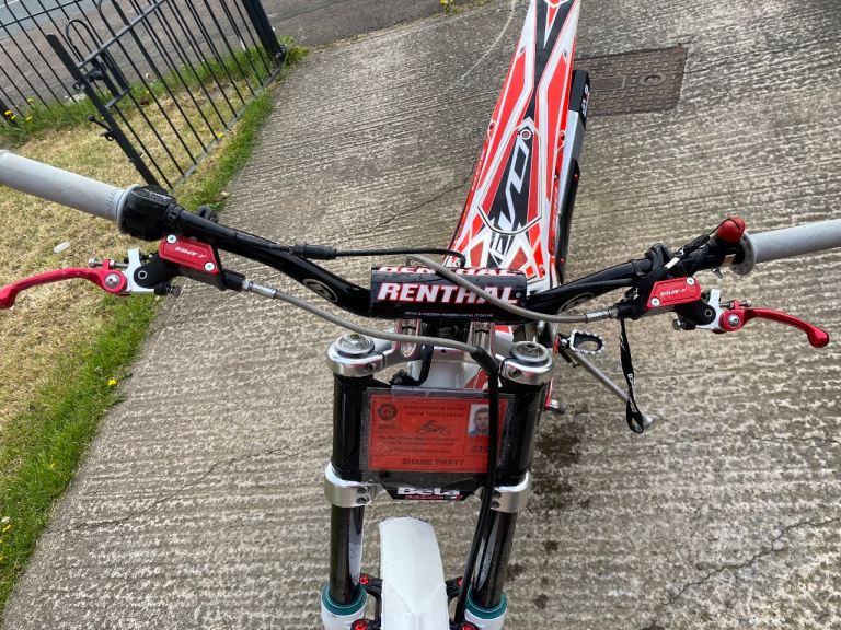 Road registered in my name absolutely mint condition spent a lot of money on the bike just had a service including fresh oil , radiator coolant, new filter, new plug, front and rear break pads, new front back sprockets+ chain, front and back wheel bearings, new exghaust packing,also has s3 hard rock pegs, red brake and clutch covers, snap back levers, red oil cap , red petrol cap , red snail cams, red back wheel nut, clutch and gear box casing covers , red silicone hoses,new kill switch lanyard fitted, new renthal soft grips, new renthal fat bar pad, new orignal beta rim stickers slow action throttle fitted really well looked after bike wants for absolute nothing genuine reason for sale