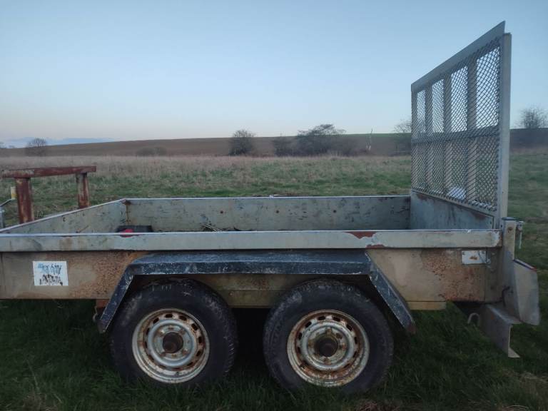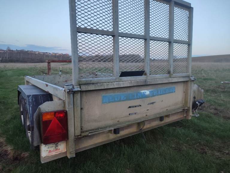 BLUE LINE Plant trailer, still used but needs work doing, hitch not damping and needs jockey wheel, 1 x rear light and handbrake and hitch damper dont dampen up so bangs when braking