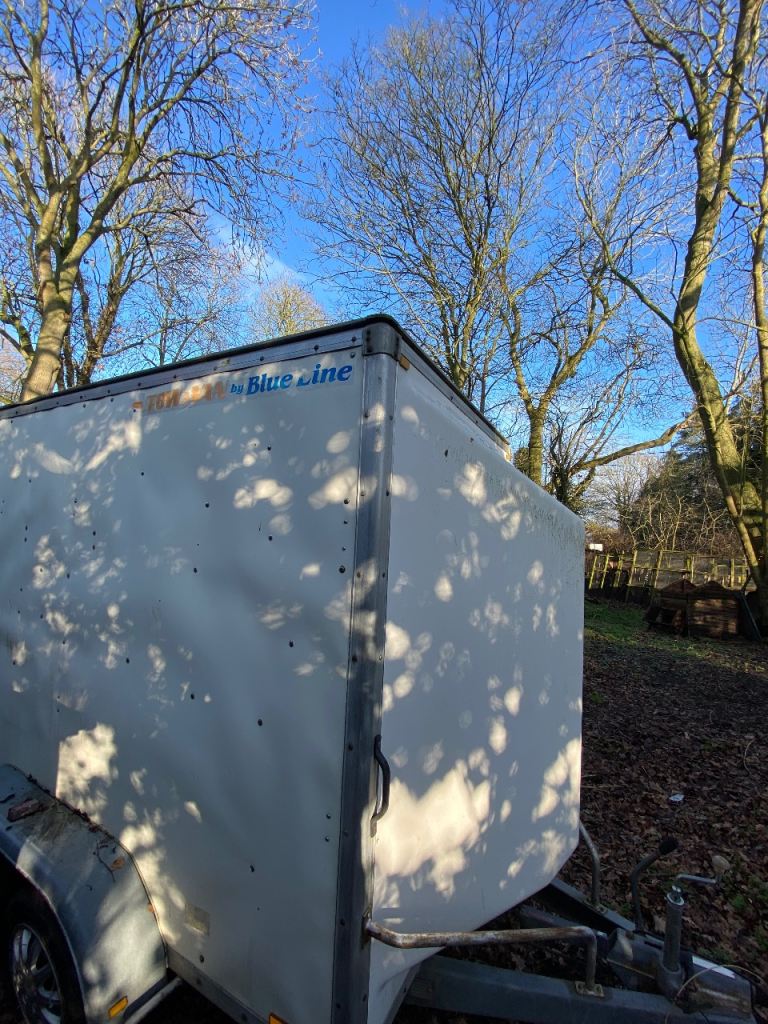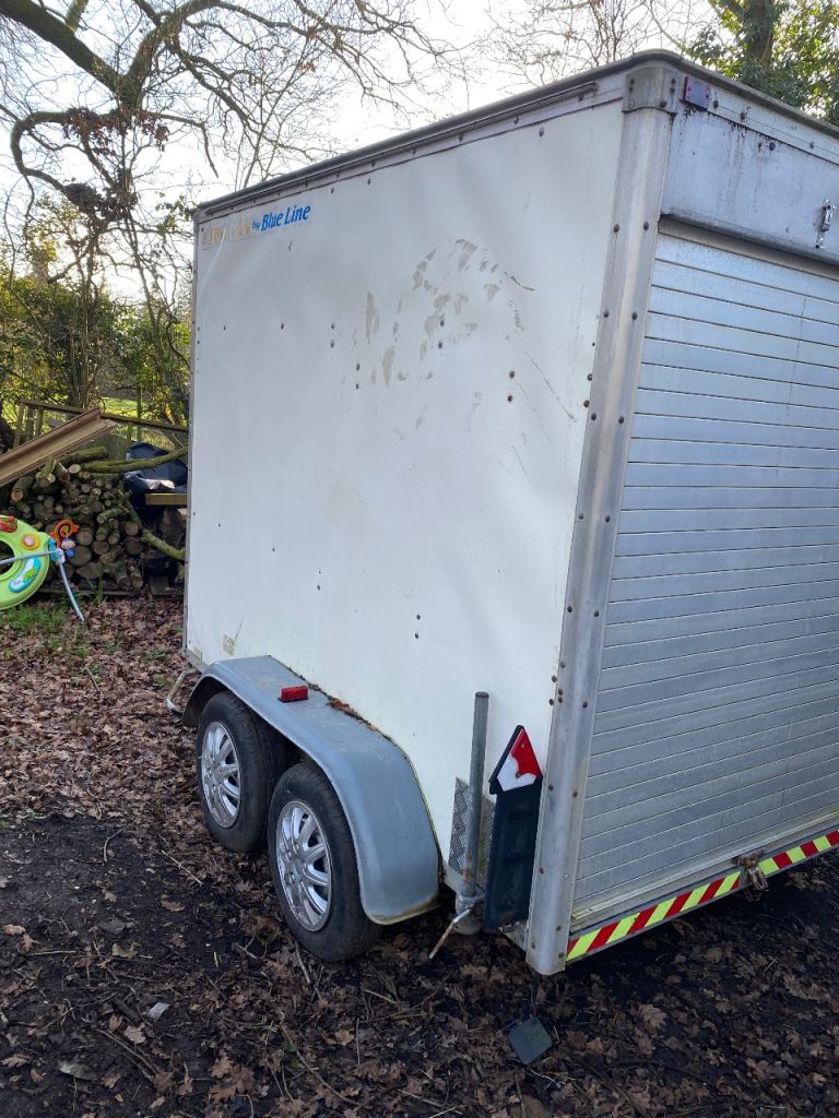 Towavan by Blue Line twin axle braked box trailer in solid working condition.