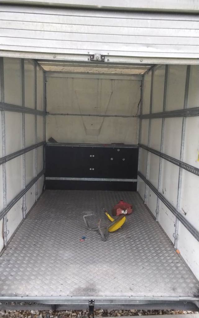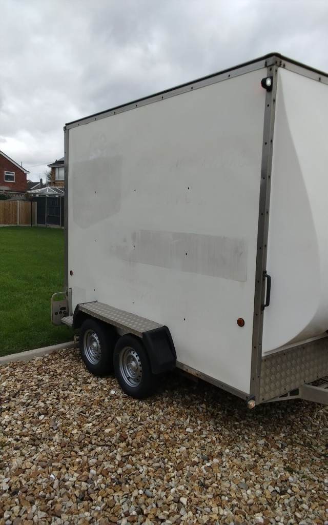 In side 10 foot long 6 foot wide 7 foot high got motor mover just need connecting five nearly new tyres good brakes strong hand brake lights work two support legs cash on collection might deliver depending on distance 13 pin connector