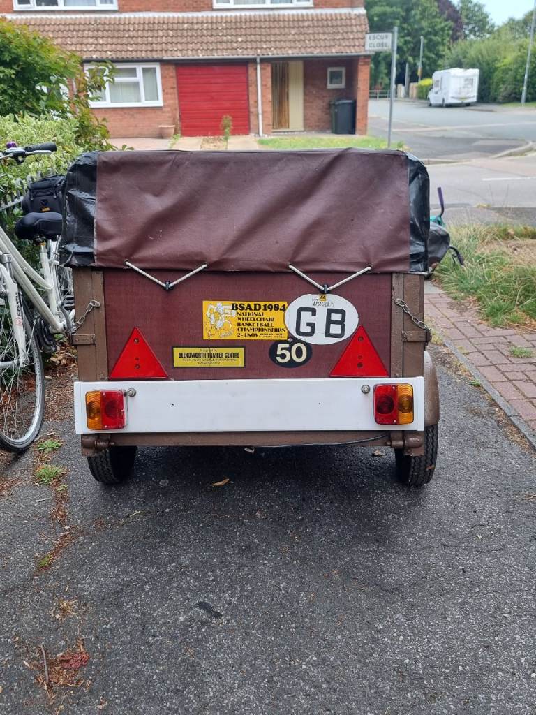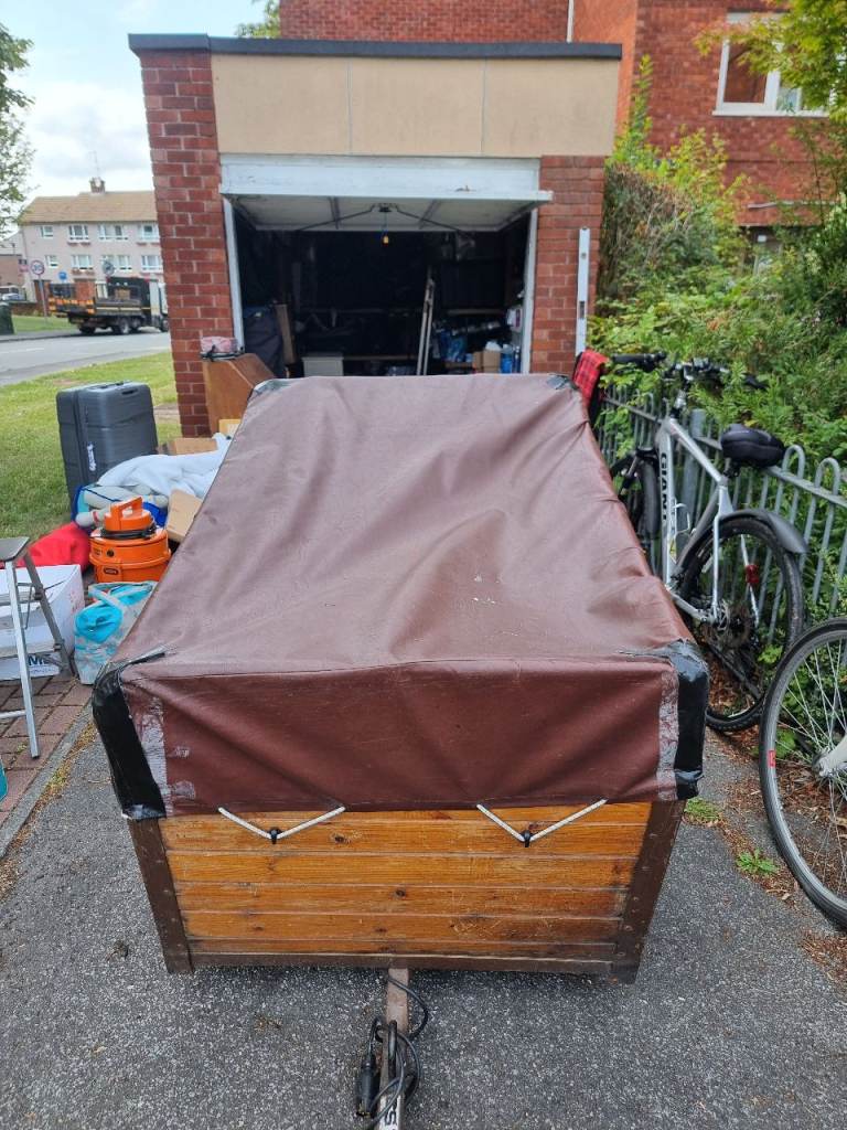 4ft x6ft wooden box trailer, with metal extension frame and cover. Plus 2 spare wheels will need some maintenance