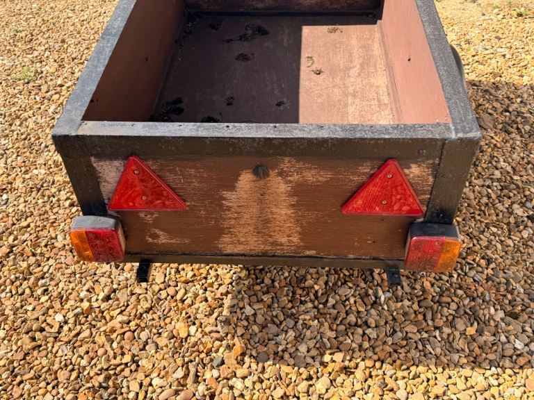 30.5” x 48” Box trailer with suspension and lights fitted. Decent condition, well maintained just needing a bit of TLC. Price reflects this.