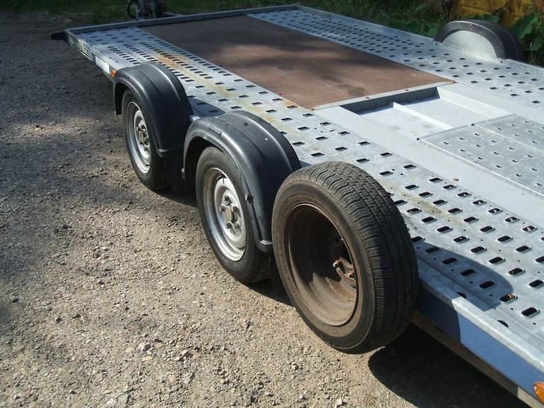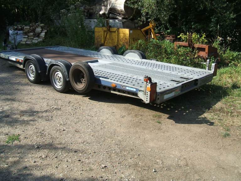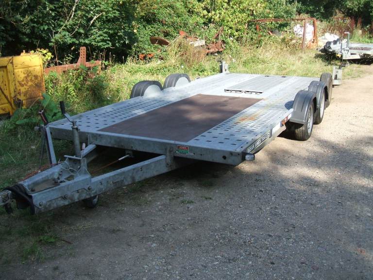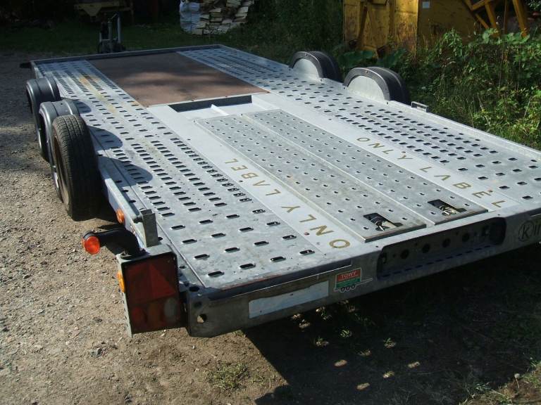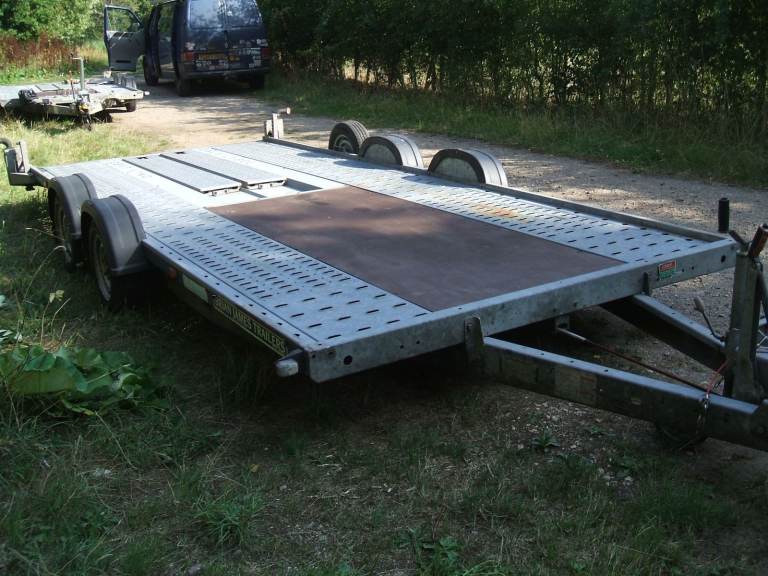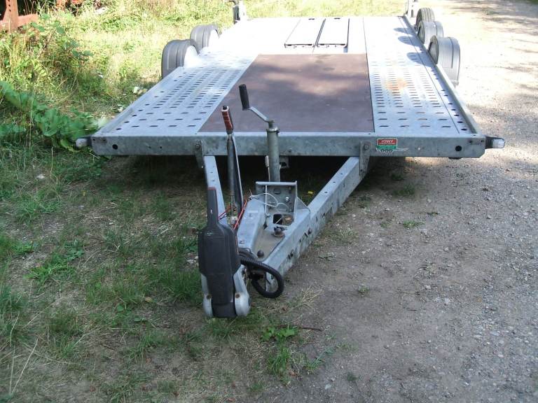 Brian James C4 Blue Car Transporter Trailer 4.9 mitre's X 2 mitres gross weight 2,600 kg carrying weight 1,900 kg, has stay's that drop down for loading, loading ramp's that sit in the centre of trailer for easy loading, can slide ramp's closer for loading norrow wheel vehicle's, vintage & classic's 90 cm inside measurement, has Rhino remote control winch has 2,500 pound pull, I removed so it would'nt get stolen, easy to re-fit, ONO cash on collection,
