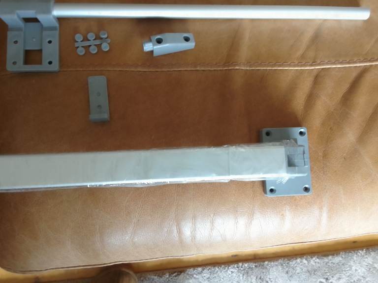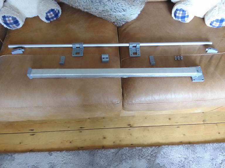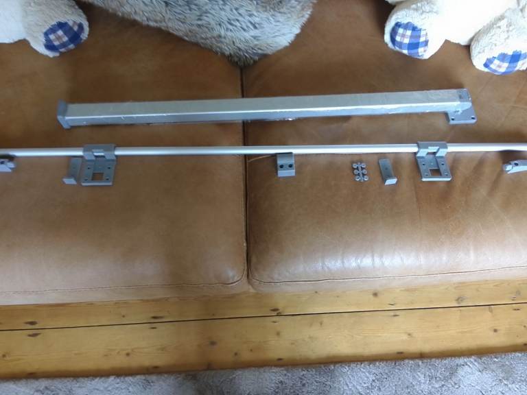Aluminium rail 37 /and a half inch long and table leg 28/and a half inch with all the end caps rail hooks and locking catches and screw caps the leg locks up and down position perfect for campervan clipon table all brand new never been used cash on collection any questions please get InTouch thanks joe