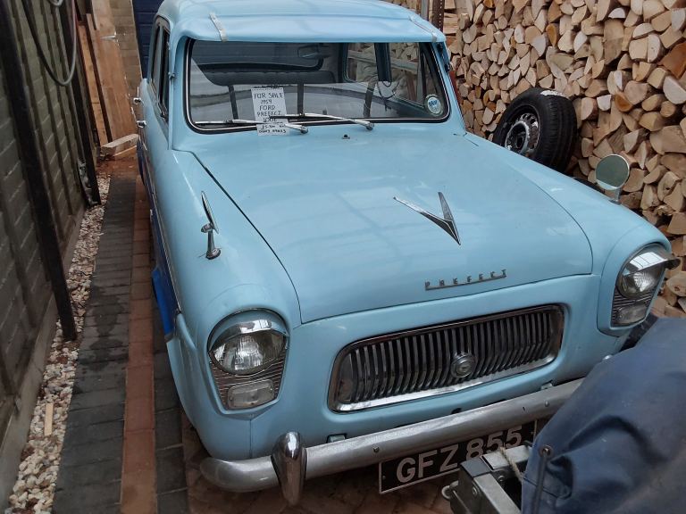 Two tone blue ford prefect 1959 4 door, good condition, new rear brakes, new tyres four years ago, hardly used from when it was bought, mileage unknown, the price is reduced by £1000 from when first advertised