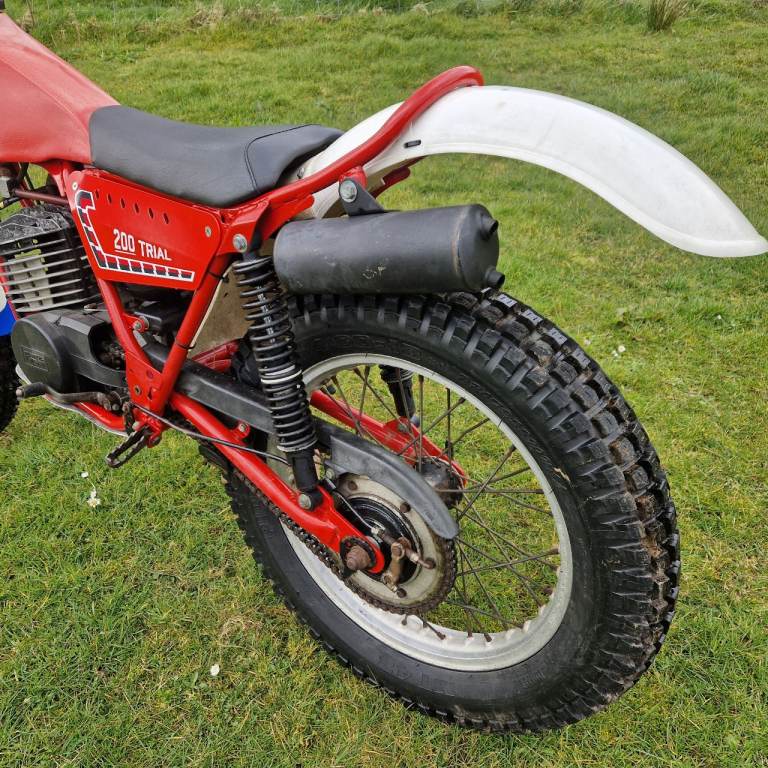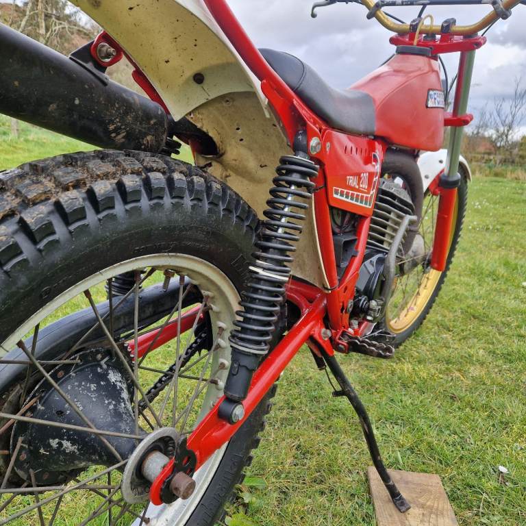This is the 156cc Minarelli-engined “back kick” model, now much sought after for twin-shock trials.