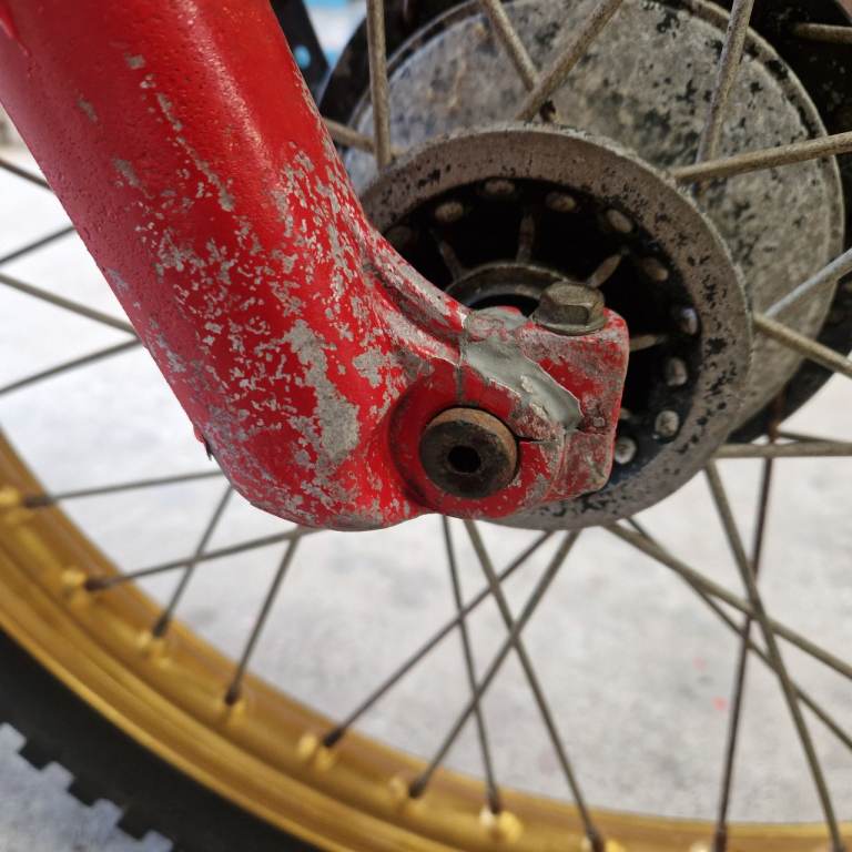 • RH slider casting cracked at axle pinch-bolt: axle still held firmly and kind-of fixed with epoxy metal (see picture); this turned out to work fine so I’ve never got around to fixing properly. Would be cheap and easy to get welded if required or replacement sliders quite easily available