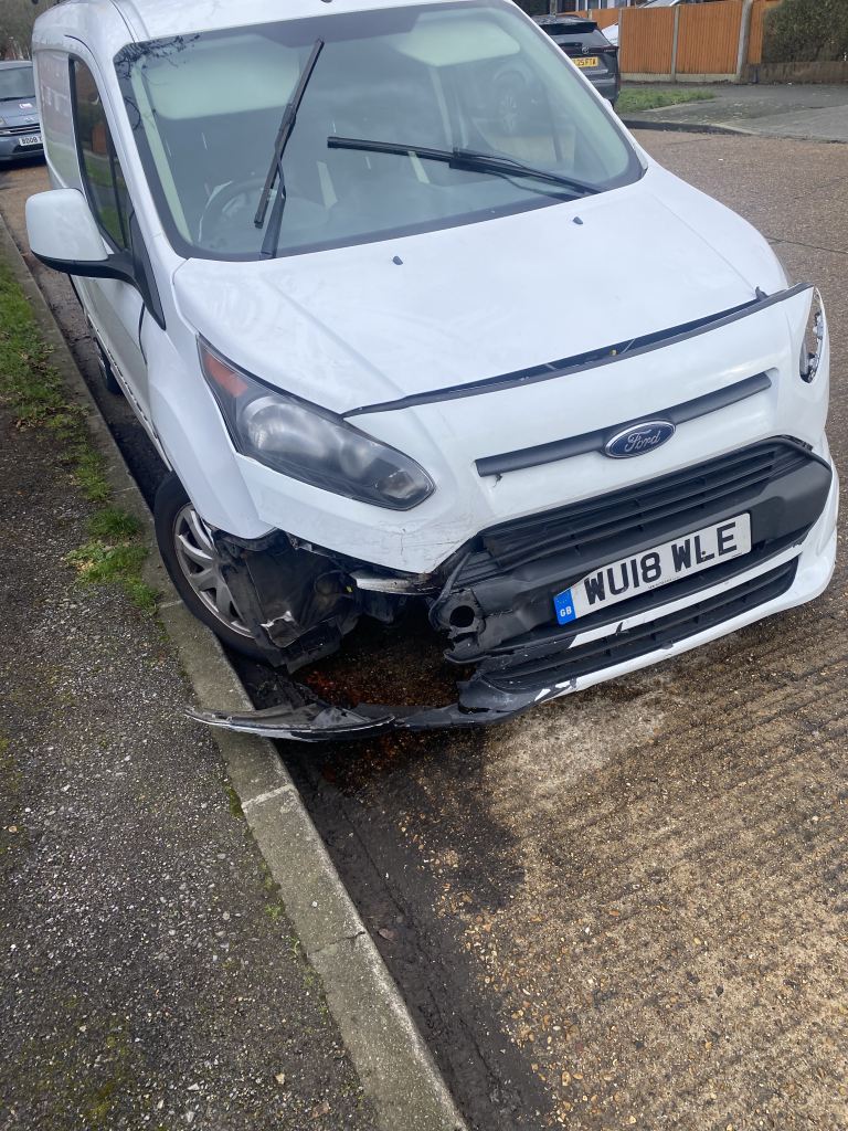 White ford van, crash on near side front.