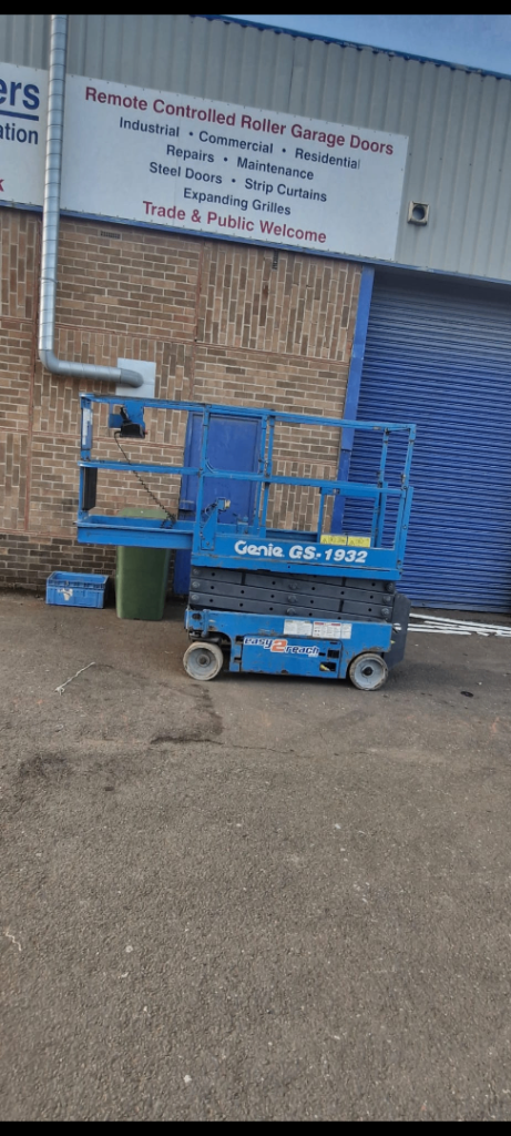 The Genie GS-1932 is a compact electric scissor lift with a maximum working height of 7.8 m and a platform capacity of 227 kg, making it ideal for indoor and outdoor use on firm, level surfaces. Its stowed length of 1.83 m and width of 0.81 m allow easy maneuverability in tight spaces.