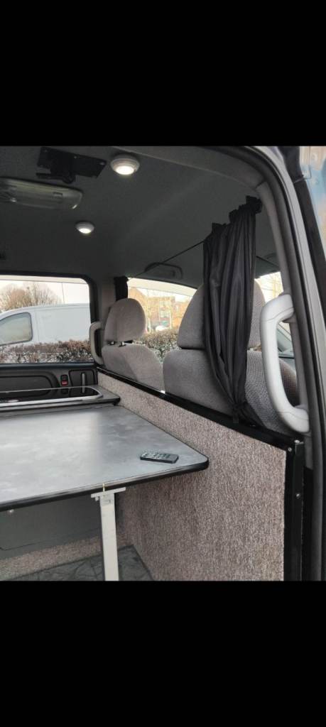 The rea pulls out and up thw tail gate could be used with a shower screen cover with a portable shower just idea