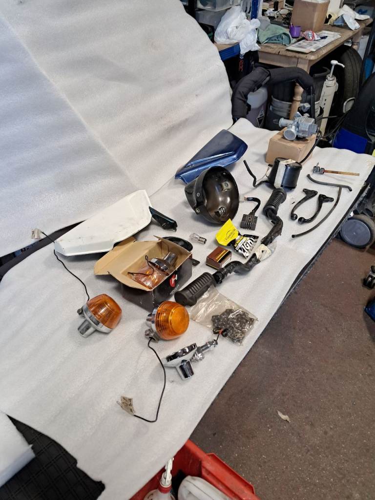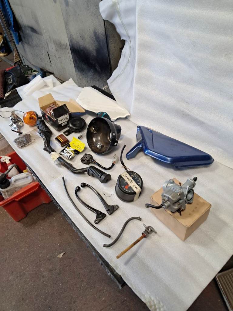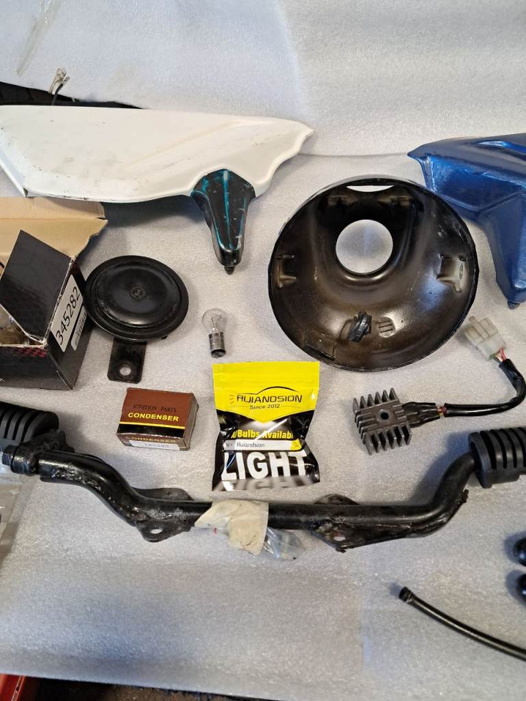 Old parts are included along with a number of spares including a can of new paint to match.