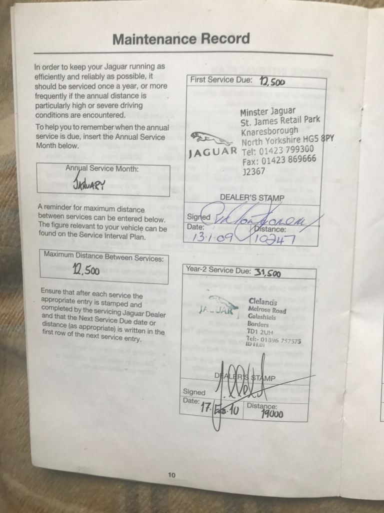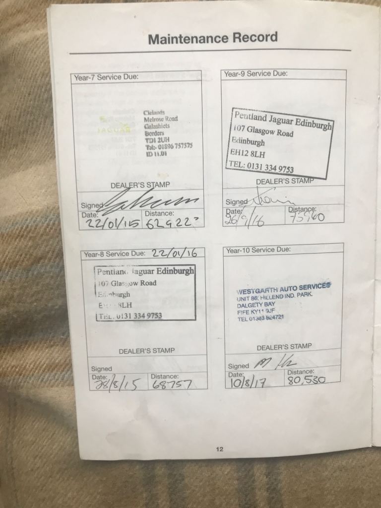 Also just found a folder with all the original receipts for any services and work carried out at other times from date I purchased in 2015 when Pentland Jaguar carried out work before selling to me totalling £1,188