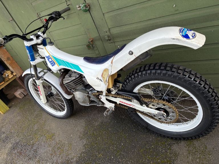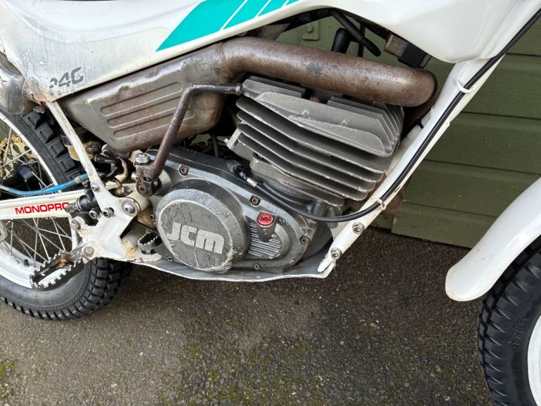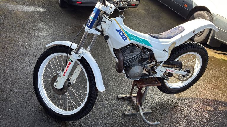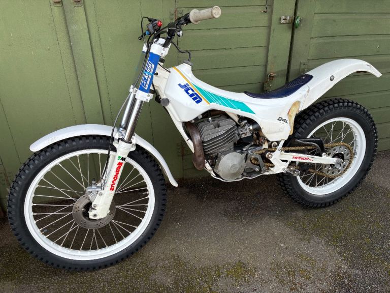JCM 240cc 1989, air cooled mono shock trials bike, engine is gasgas, ready to trial, tyres, chain sprockets all good, runs and rides very well, wheels were rebuilt a few years ago, with stainless spokes, frame powder coated, comes with a new spare tank cover and rear mudguard, can deliver local…