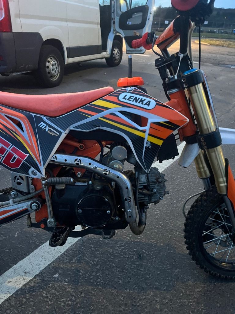 Here I have my sons lenka 110 pit bike I bought at Christmas brand new it’s a 2025 model with electric start and kick start also it’s a semi automatic with 4 gears the bike has only been used twice and parked up the rest of time for any videos of the bike running please dm open to offers