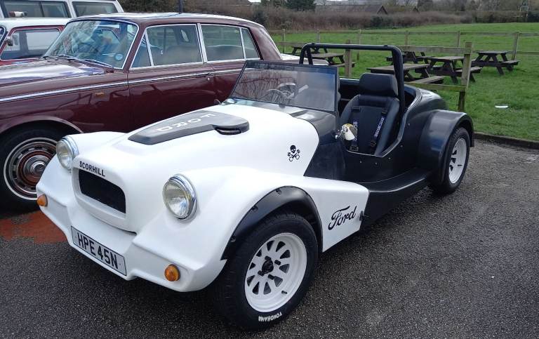Correctly registered Scorhill Magic Ford based classic kit car which has been totally restored with rebuilt Pinto engine 2 litre Rebored with Mahle pistons, mild Road camshaft and many other subtle modifications. The rebuilt gearbox is a type 9 5 speed and it has and Atlas axle.. Lots of receipts and documents. Only 1000 miles.