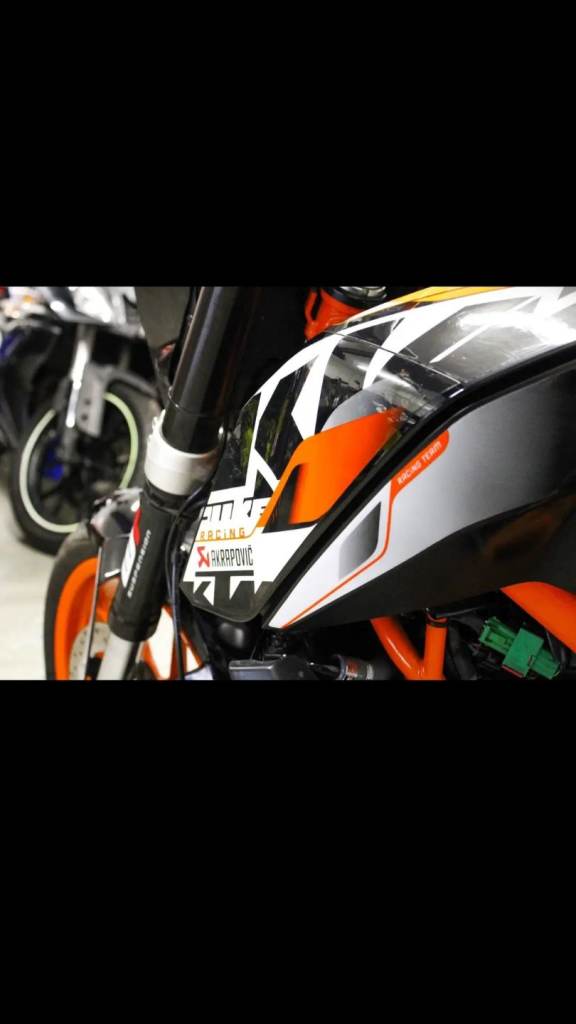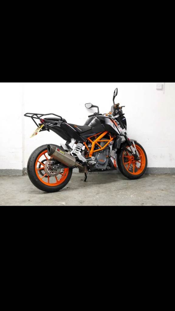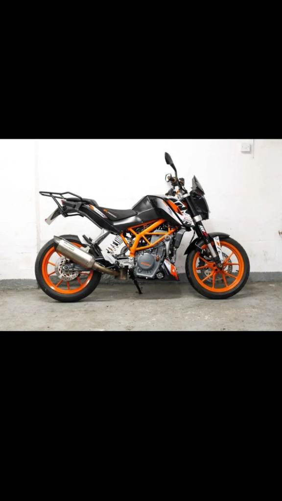Here I have my KTM duke 390cc with full Akrapovic exhaust pipe which sounds very nice and looks beautiful runs smooth without any issues and very fast bike for what it is. It has been serviced and brand new brake pads put on also front and rear tyres, comes with 12 months MOT which passed without advisories 2 keys and full service history and a lot of receipts 1 owner from new very well looked after since new.