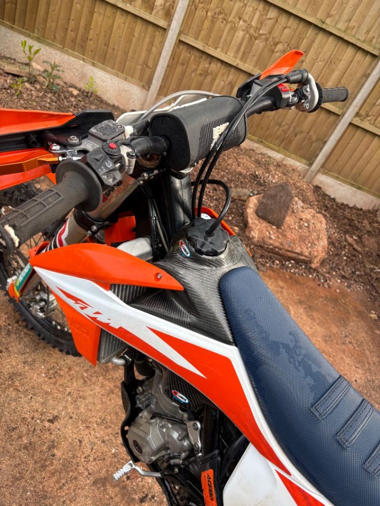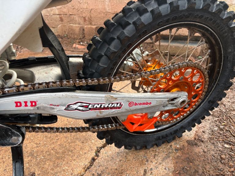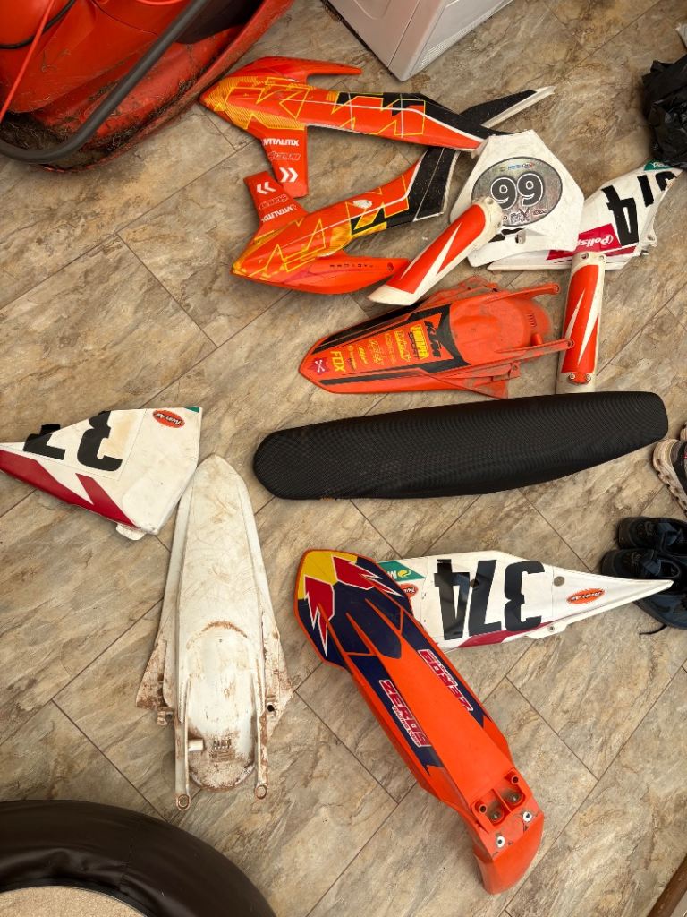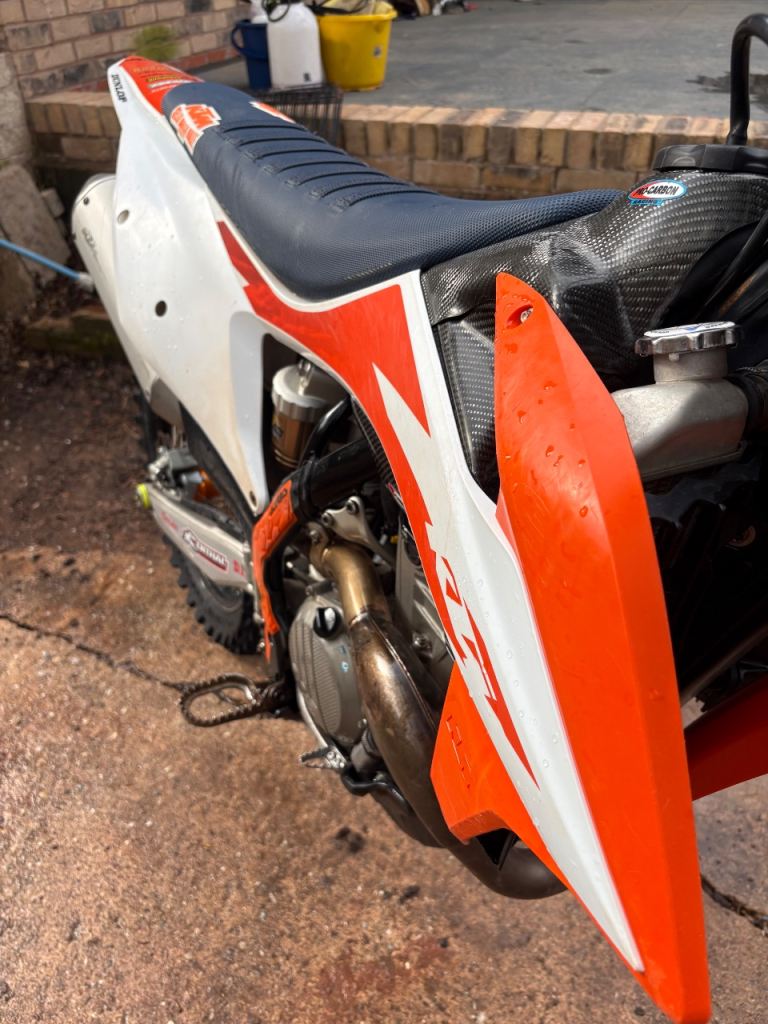 Has a few extras wide titanium foot pegs cooling fan spare grips and full set of spare plastics and seat does need a new rear tyre