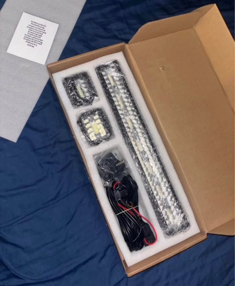 LED 20” LIGHT BAR AND 2 X 4” LED POD KIT. BRAND NEW. UNUSED. ALL COMPLETE WITH WIRING HARNESS AND SWITCH. £45