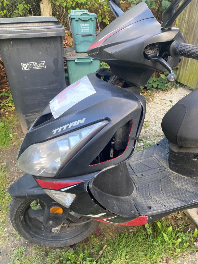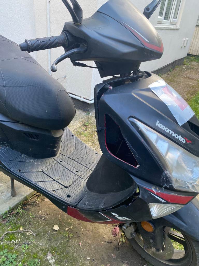Used 2021 125cc automatic Lexmoto Titan 125 scooter, looking to sell either for parts, or for repair. The exhaust unit unbolted or fell off from the connection with engine at the botom, handlebars seem to need tightening or somethings, there is a delay when moving the front wheel one or other way, new battery needed, havent done MOT, as was declared off road, SORNed. The plastic front panels need either replacing, or can be secured with fresh bolts or plastic fastners . The pictures are of this actual scooter.