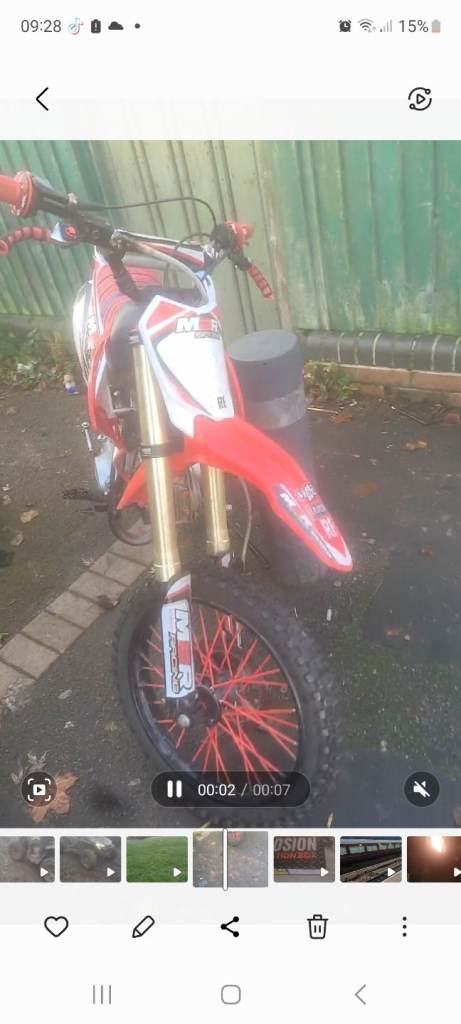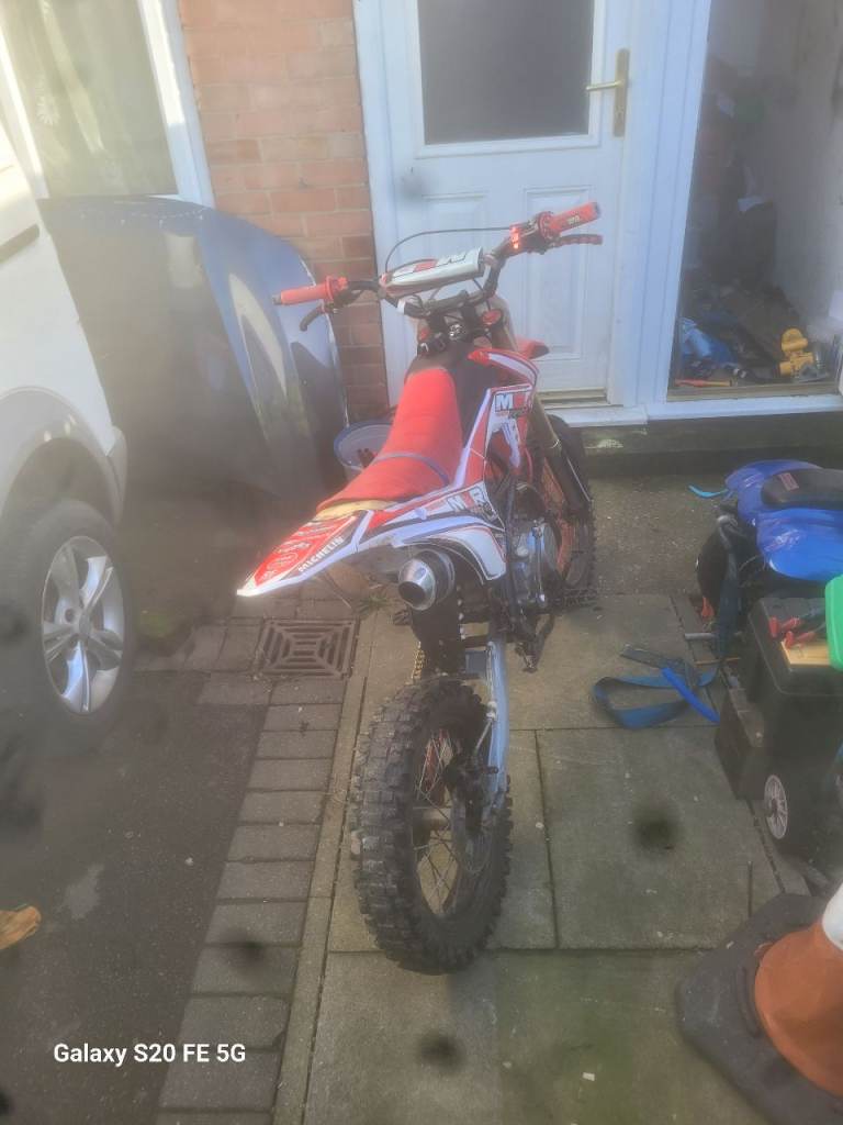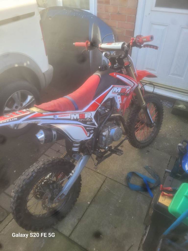 Here is my sons m2r 125 rides stops how it should looking to get my son something a little smaller 350 ovno