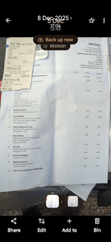 Last service I spent £3.5k on service at bongo centre