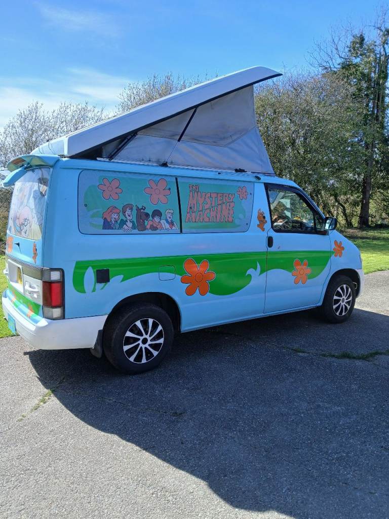 Mazda bongo 2.5 diesel automatic camper van sleep 4 got everything you need fridge sink and tap two gas hobs electric blinds lighting all round solar panels on roof all kitted out as the scooby doo mystery machine superb condition all round 97000 miles from new mot Feb 1997