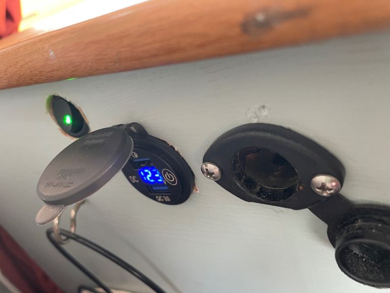 - USB x 2 and cigarette 12V plug in the “bed” area. Works off grid.