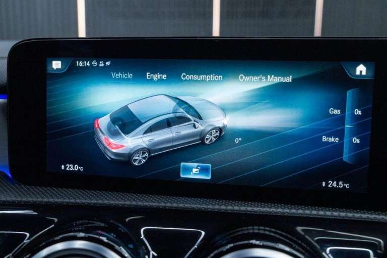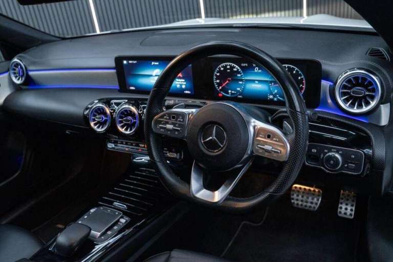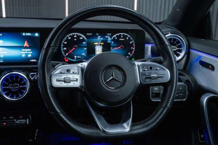 The Mercedes-Benz CLA180 AMG Line is a striking four-door coupé that blends sporty styling with premium comfort and cutting-edge technology. Powered by a responsive 1.3-litre petrol engine producing 136 PS, paired with the smooth 7G-DCT automatic gearbox, this Euro 6 model offers refined performance, excellent efficiency, and a dynamic drive.