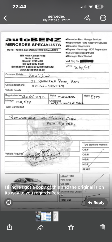 ✅ Engine timing chain replaced – invoice available