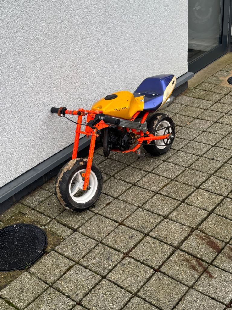The bike start and drive. Because is brand new need the choke (carburettor)to be adjusted and back tyre is soft because my nephew ride on it to make the speed lower for him. Open to offers