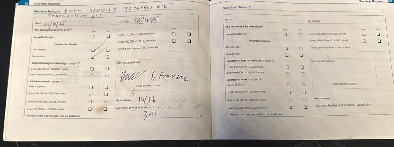 Fully service ( ALL FLUIDS AND OILS HAVE BEEN CHANGED SO NOT NEEDED NOW FOR AT LEAST 5k miles for next one.