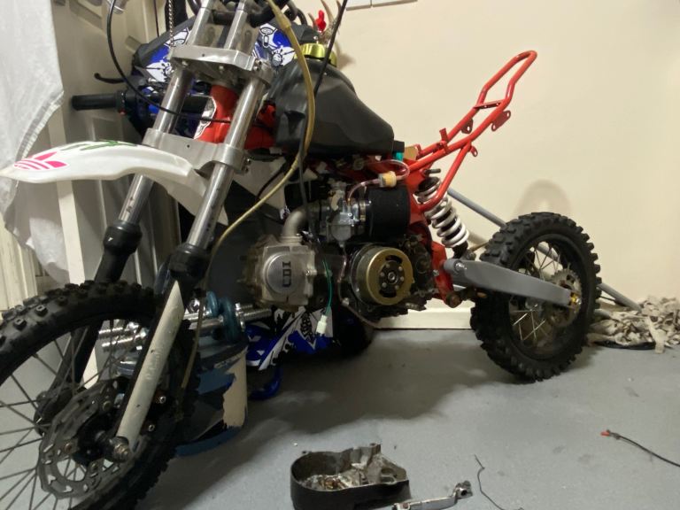 Moto madness 125cc pit bike , hi I’m selling this bike as unfinished project , it doesn’t need much more work done , the bike had very little use before it was stripped down for swing arm bushes , from there it has had :