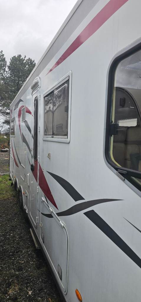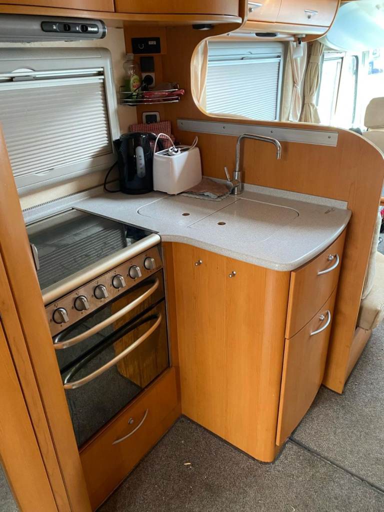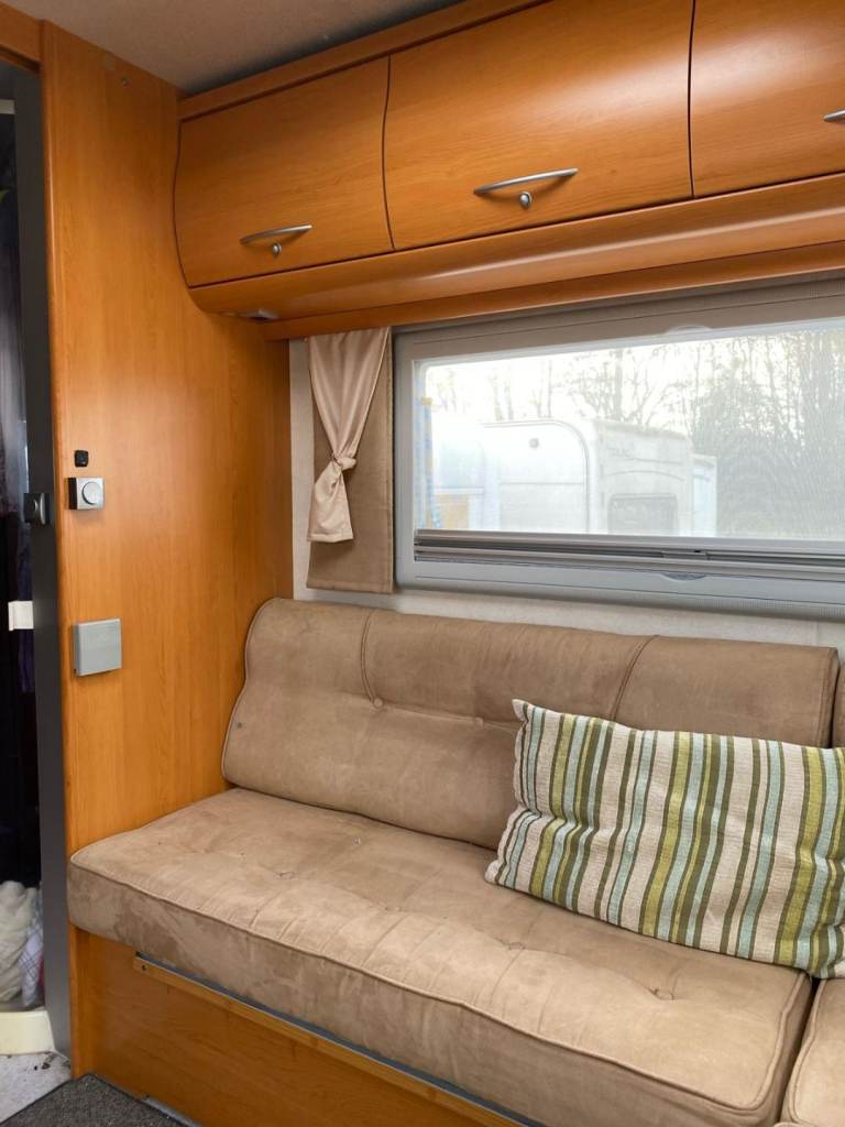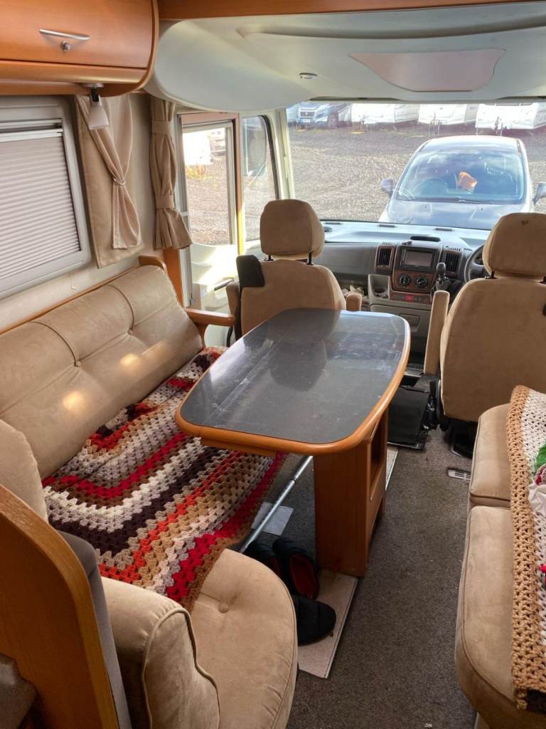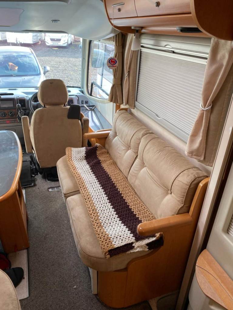 8.4 mtrs long; four belted seats; double bed above driver / passenger seats.