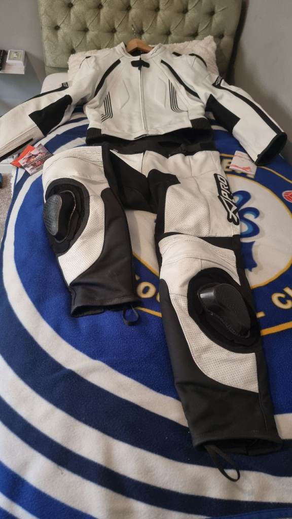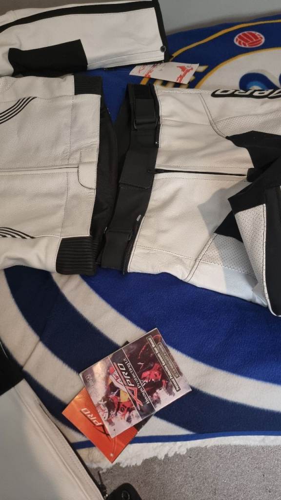 For sale is an xpro full leather outfit, this is size 54 and its brand new with tags. Has shoulder, elbow and knee protection. Nice genuine leathers. £100 ono.