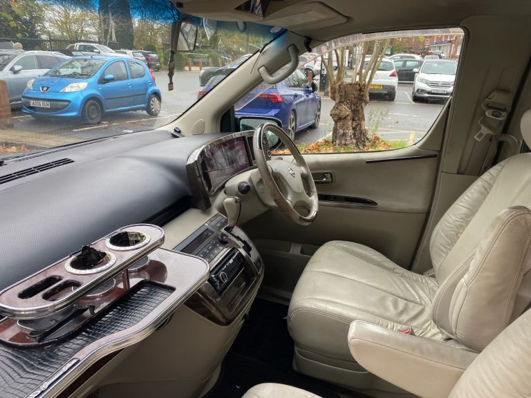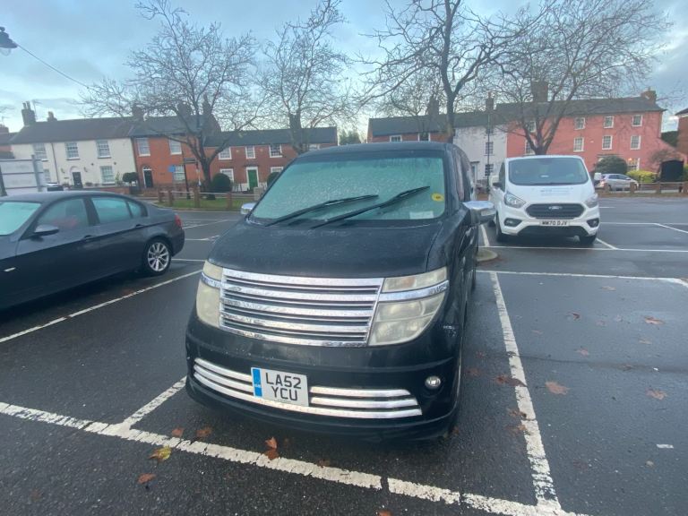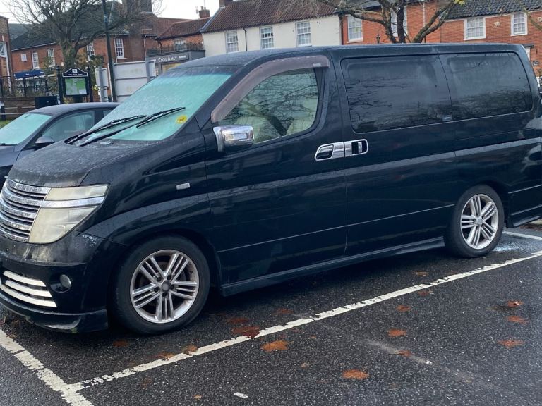 Black with cream leather seats 2002 Nissan Elgrand for sale. Working and drives well. This is 23 years old and imported. Good car for age. Has wear and tear as expected from this age car so not to expect pristine condition.