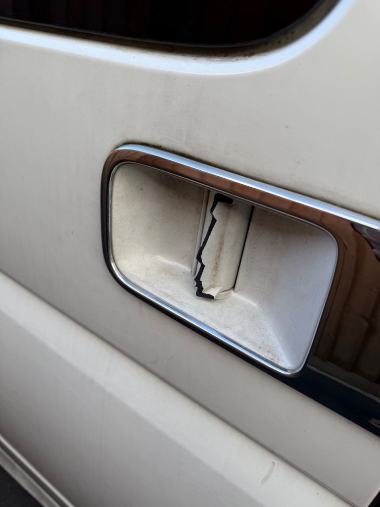Driver-side rear sliding door handle broke but opens.